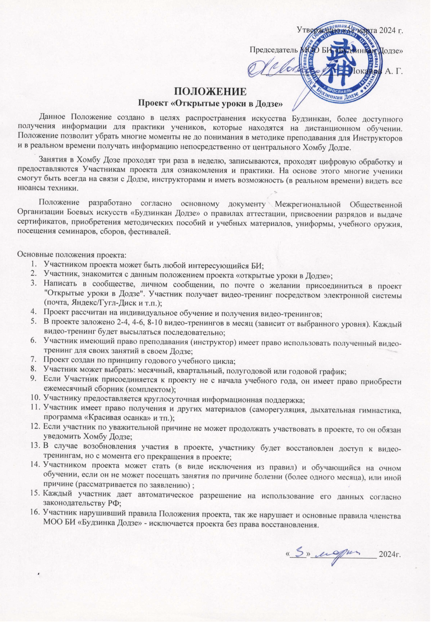 С 2024 года было решено официально открыть в нашей школе проект "Открытые уроки в Додзе"